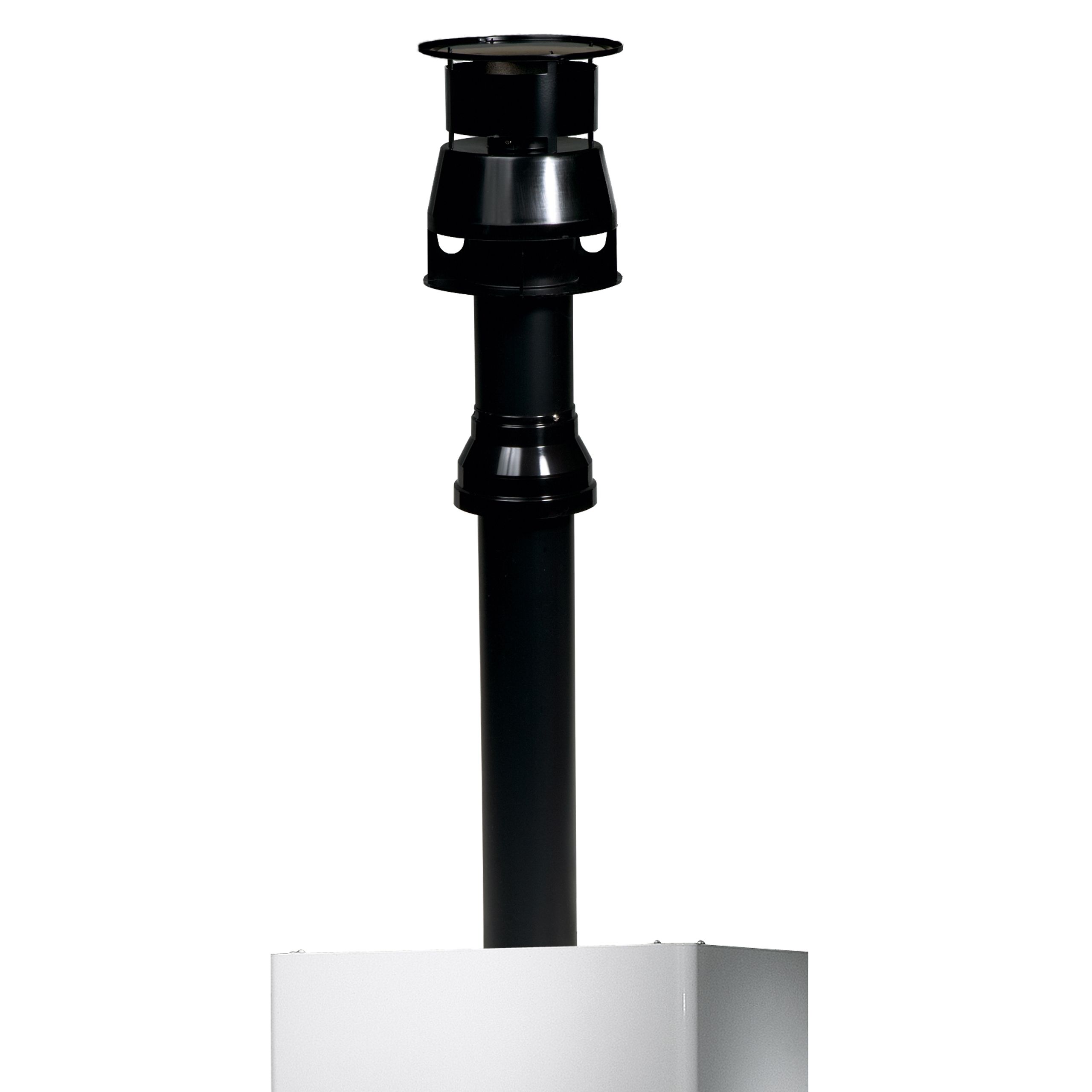 The SE vertical flue terminal is for use when installing a Vokera standard efficiency boiler where the flue needs to be taken up and out through a flat or pitched roof. Flue extensions will need to be added between the boiler and the point at which the flue terminal is placed.